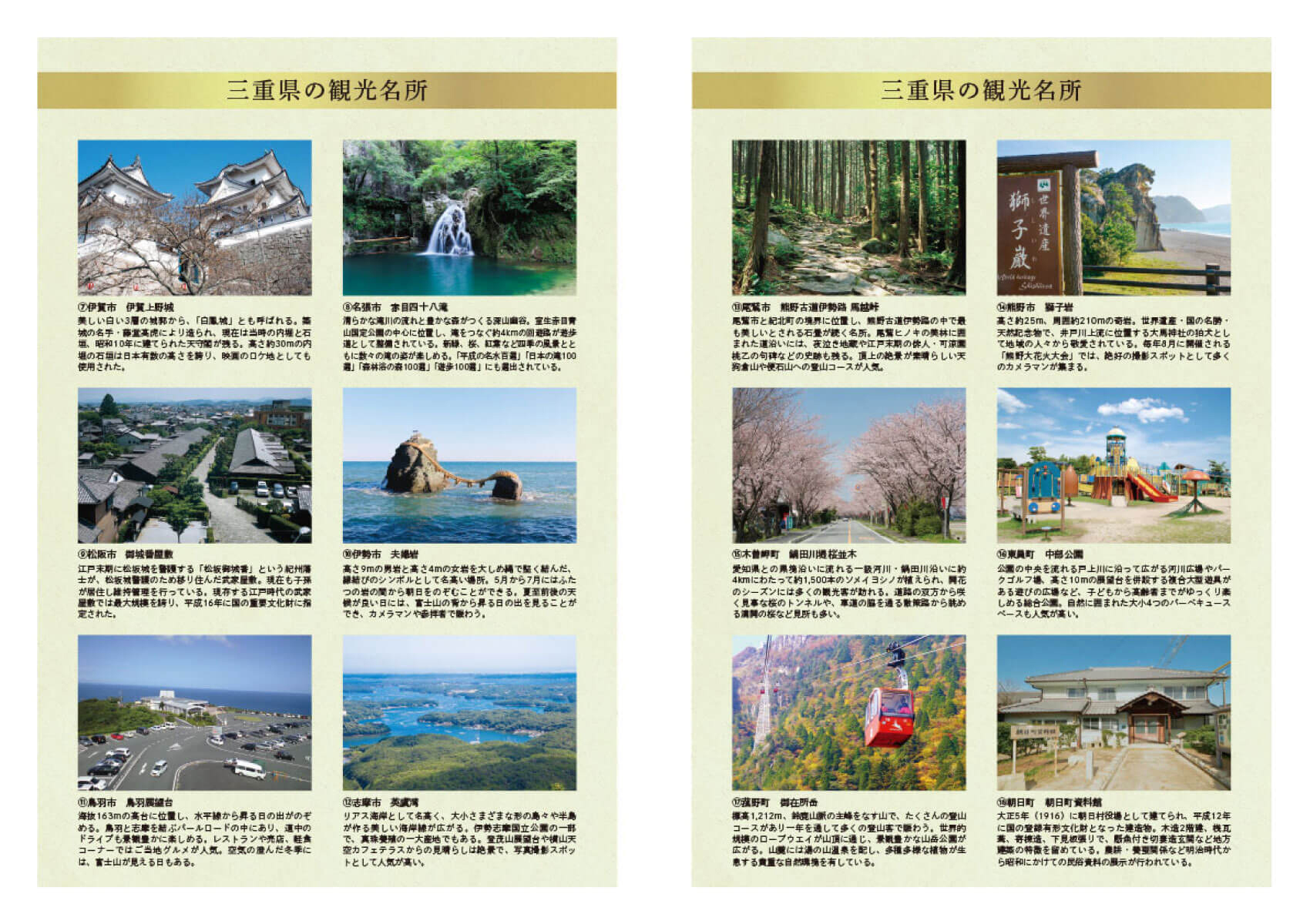 直近の20年間のできごとを見開きで分かりやすく掲載し、また三重県各市町の観光名所をクローズアップし三重県をアピールさせていただきました。