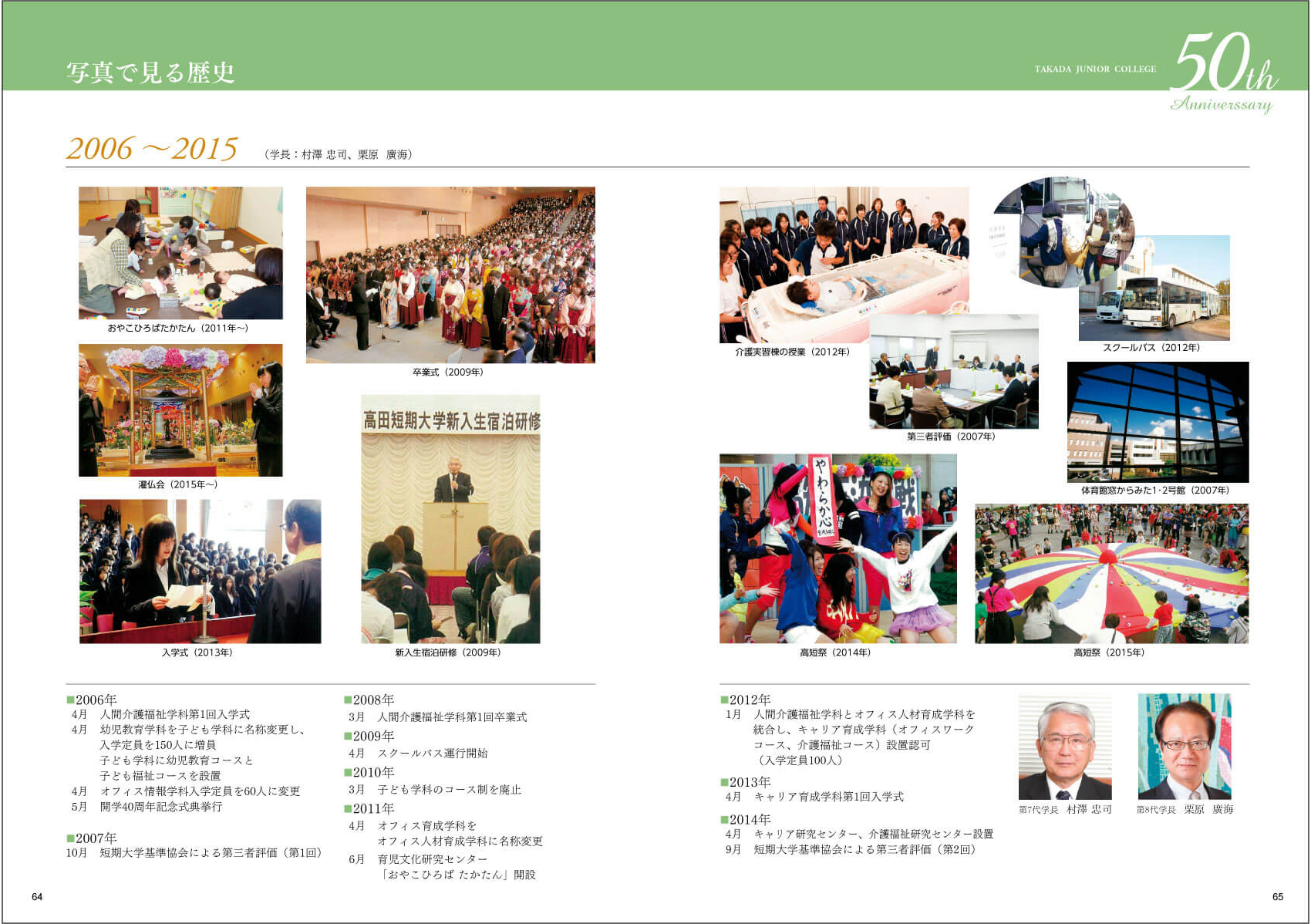職員の方のご挨拶文、卒業生・OBからの寄稿文、50年間の歴史が分かる写真を掲載しました。